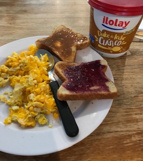 I woke up the next morning feeling somewhat refreshed and decided to make breakfast. I fetched some eggs supplied by the yard hens featured above. I guess I’m a farm girl now! I served scrambled eggs with jelly and dulce de leche toast and it was muy delicioso! It took me two hours to figure out how to work their version of the Keurig which only produced about half a cup of coffee. I simply added another pouch and pressed the button again and presto! I’m starting to get the hang of things. Our hostess came by that afternoon and showed us how to work the oven. Who knew you had to hold the gas button down for 30 seconds so the flame will stick? But hey, now we’re cooking!