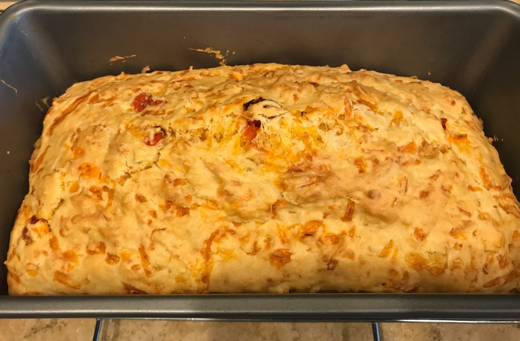 Oh well, today is a new day!☀️ I will set myself up for success by trying a simple recipe that has great reviews online. It’s a cheesy cheddar quick bread by the Crafty Cooking Mama. I’m going to adapt it to my tastes by omitting the garlic and adding rosemary and a little chopped sun dried tomato. All should be done within an hour. Wish me luck!🤞🙏