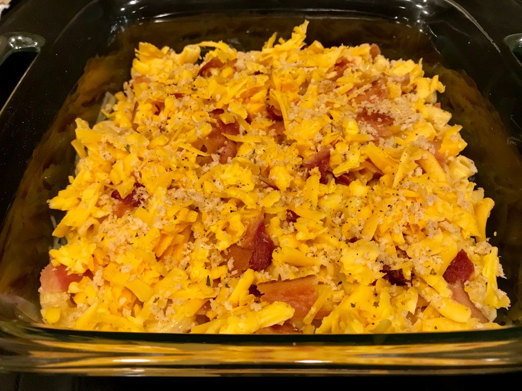 Results: Two forks up!! This had a nice balance of cheese, creaminess and bacon flavor throughout. It had just enough salt and was certainly not bland. The best bites were the pockets of cheese that binded with the bacon and breadcrumbs. With just a little extra effort, I was able to turn a ho hum box of Mac n cheese into a baked dish with lots of flavor and texture. I will make this again and again and again! 👩🍳🧀🥓