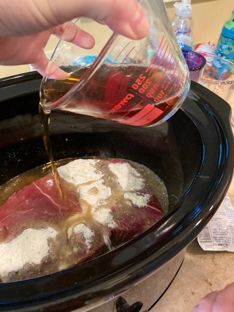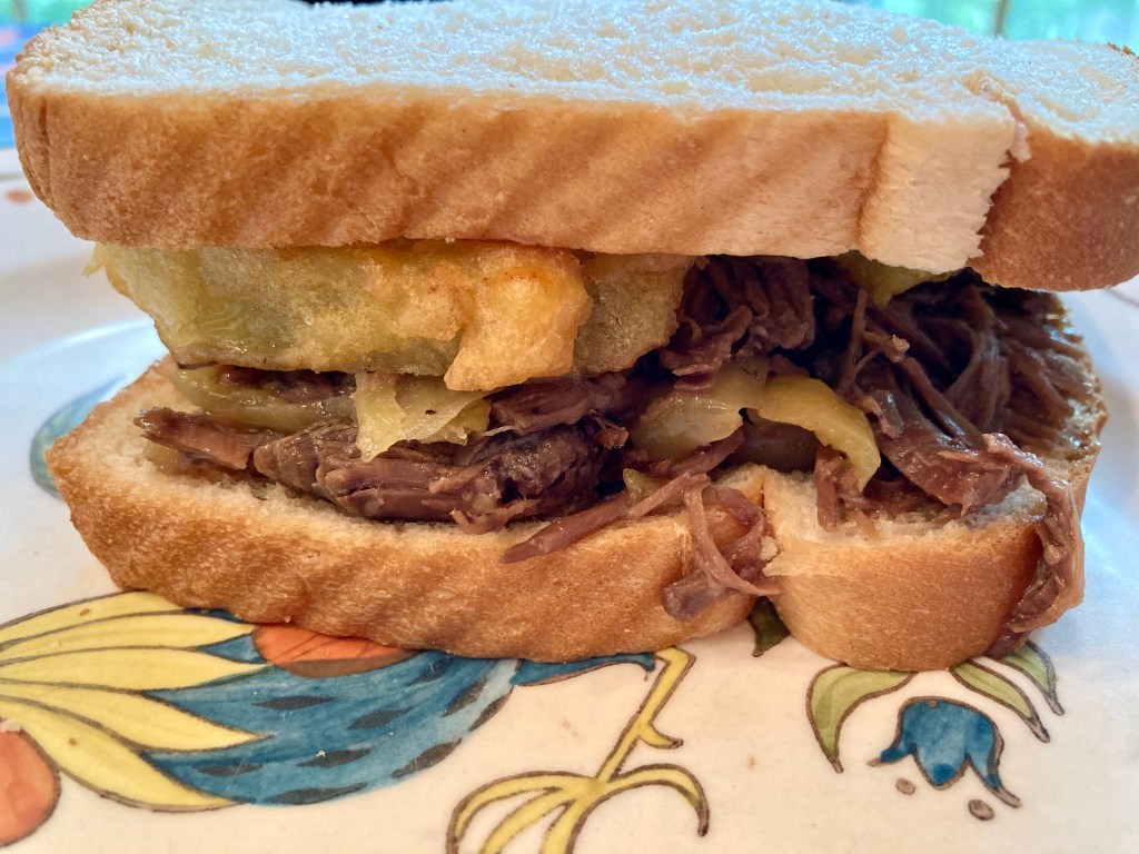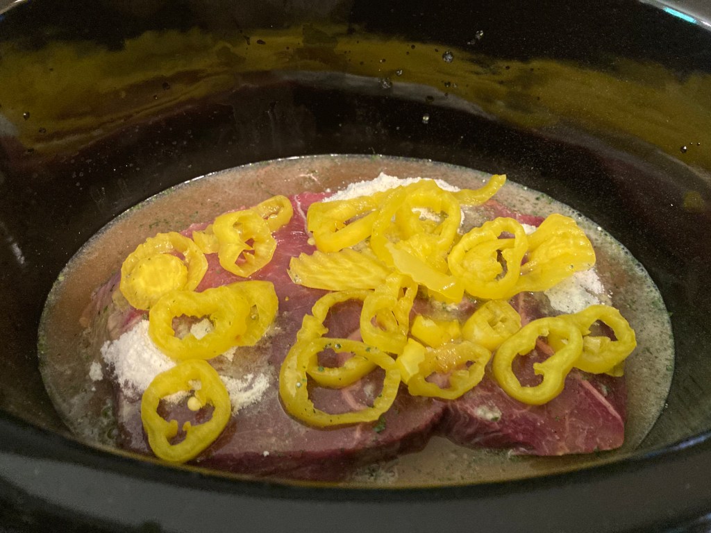 I changed a couple of ingredients from the more traditional recipe. For instance, I used beef broth instead of an au jus packet. I also subbed banana peppers for pepperoncini because theyβre a lot cheaper and taste the same to me.Β