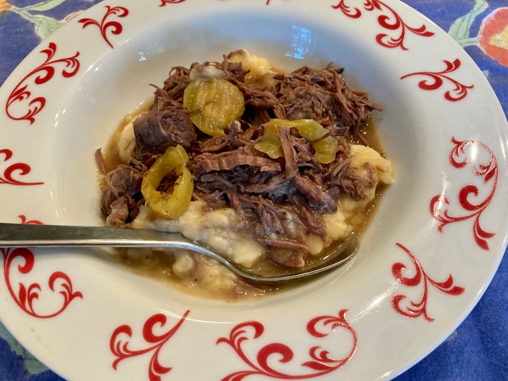 There are many ways to enjoy the roast to include over rice, with noodles, or potatoes and carrots to name a few. I also love to use leftover roast for sandwiches. However, for dinner I like to serve it over mashed potatoes. Itβs hearty, filling and comforting. If you really want to save time and money you can make instant mashed potatoes. My favorite flavor is the cheddar and sour cream!π