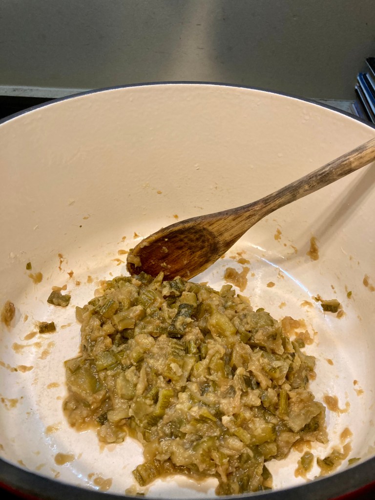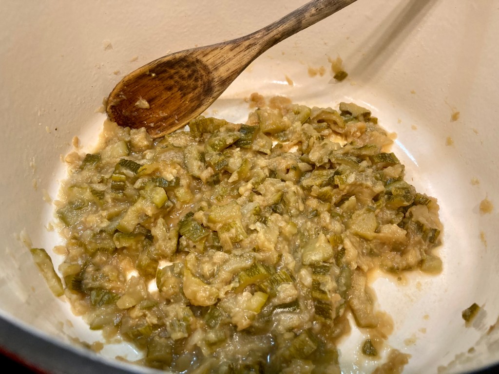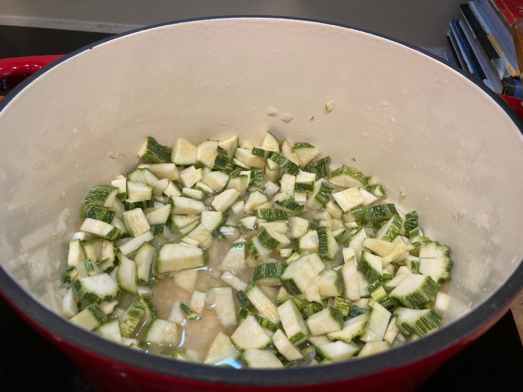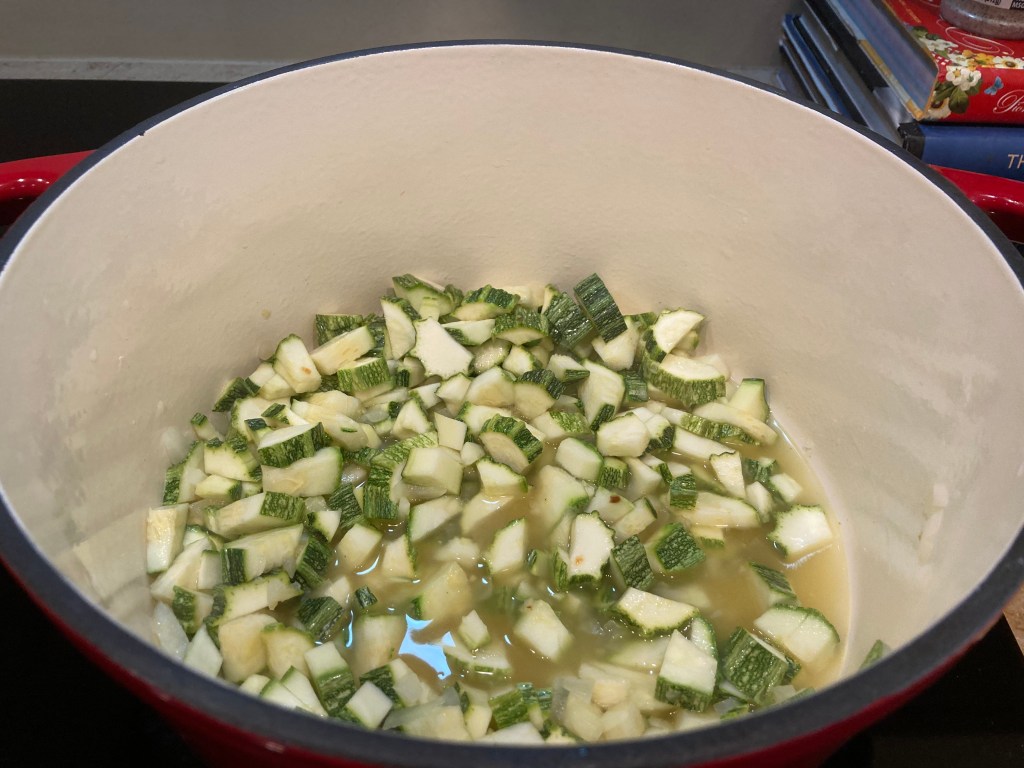 To prepare: Dice and sauté half a small yellow onion in a tablespoon of olive oil. Chop zucchini into small pieces and add to onion once it is translucent. Add half a cup of water, chicken seasoning, and season with S & P. Stir and let mixture cook down for about 4 hours until it becomes sexy, filthy mush.