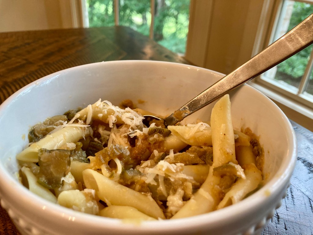 Note: Do not neglect Meghan’s mush. It requires periodic monitoring and more water at times. Before it’s done, boil noodles until al dente and drain. Once it is officially mush, add red pepper or chili powder, lemon juice, and Parmesan. Add to prepared noodles and enjoy!